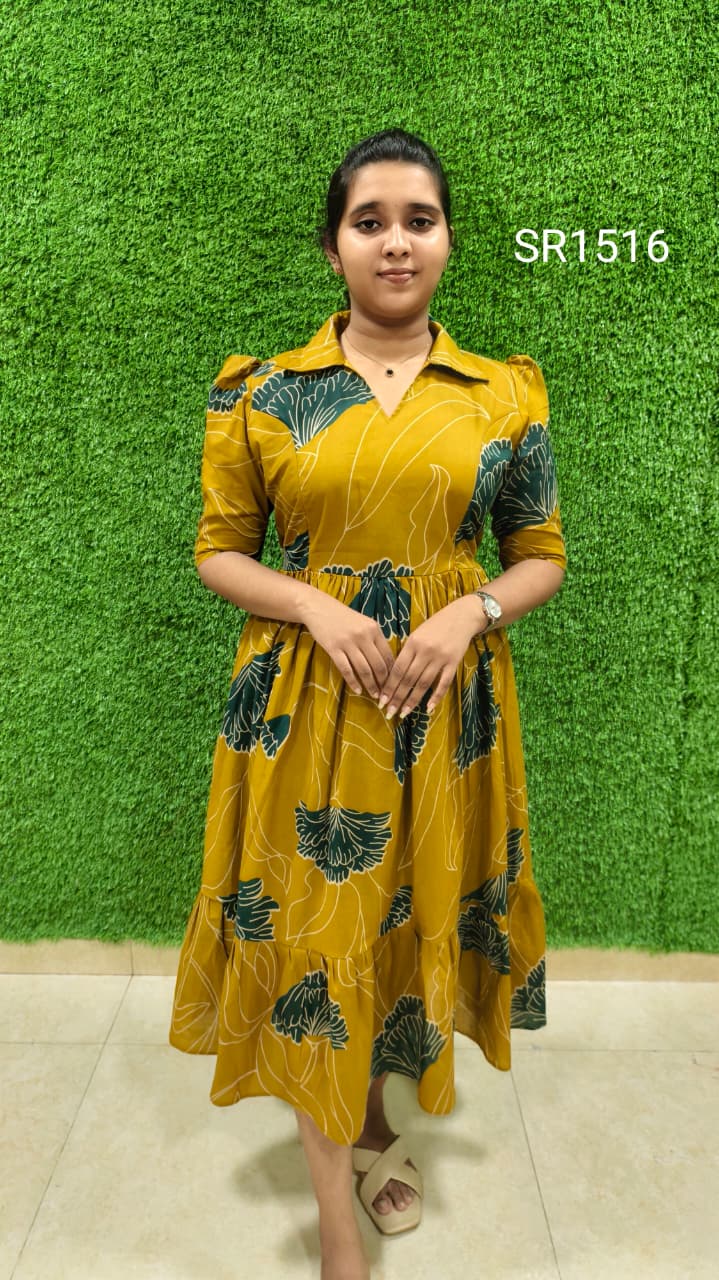_Type : 2 tier Gathering Elbow puff Sleeve and Two Side Zip back elastic_