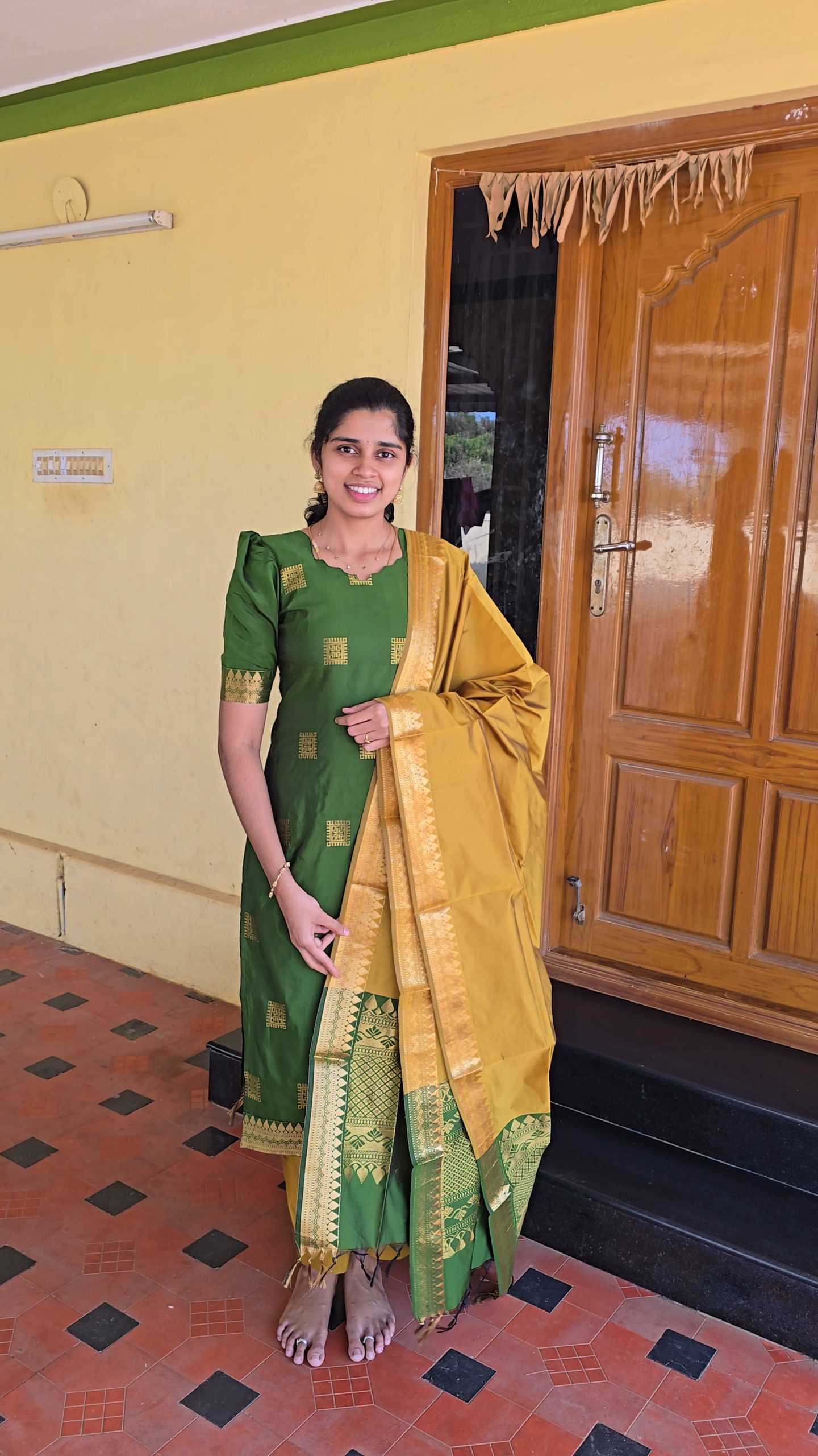 premium semi Soft-silk suit set with full lining &rich green zari duppata