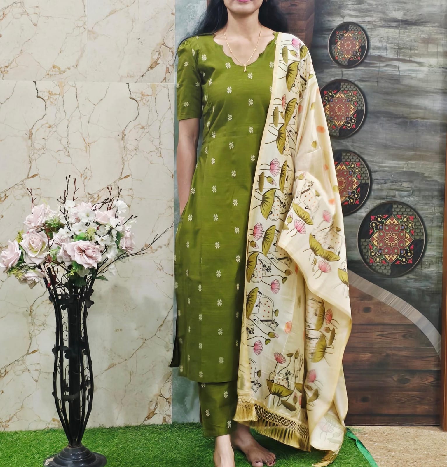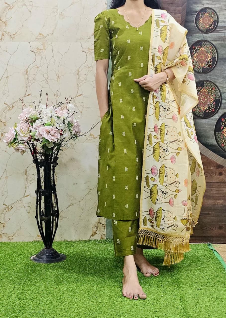 🪴 Raw silk cotton 3 pcs sets (kurta +pant+duppatta)