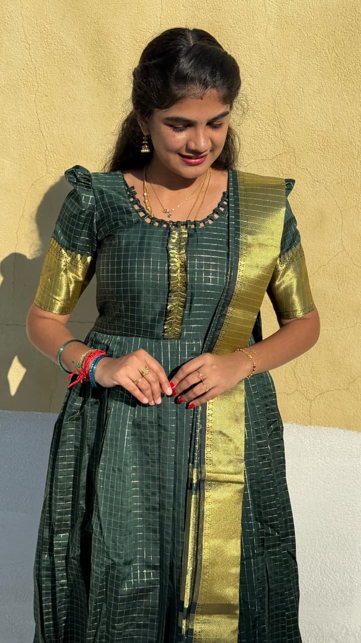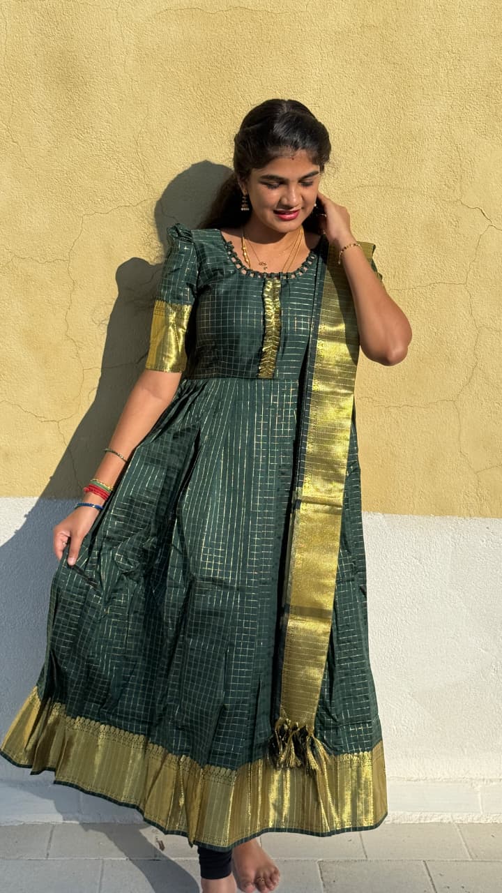 Banarasi soft silk anarkali with dupatta